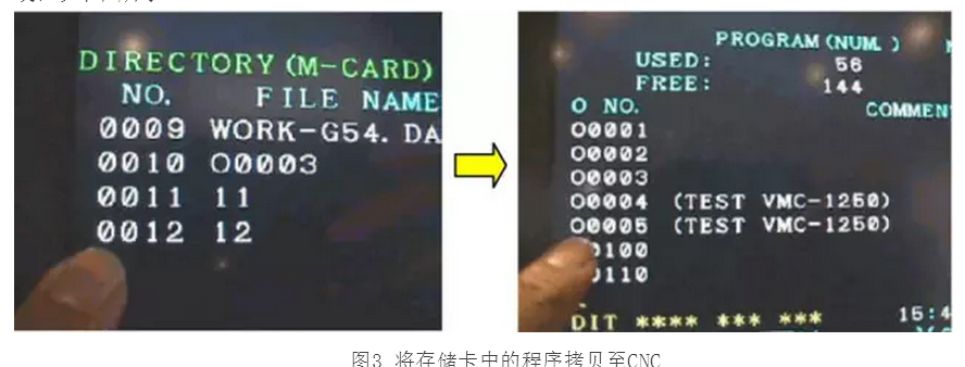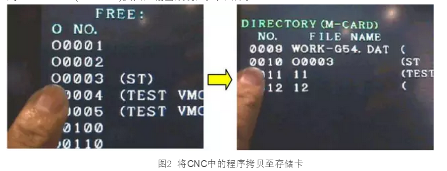 (3)查看存儲卡上的新程序。按功能鍵PROGRAM→擴(kuò)展鍵【?】→【CARD】, 看到DIRECTORY(M-CARD)頁面,輸出成功,如圖2所示。