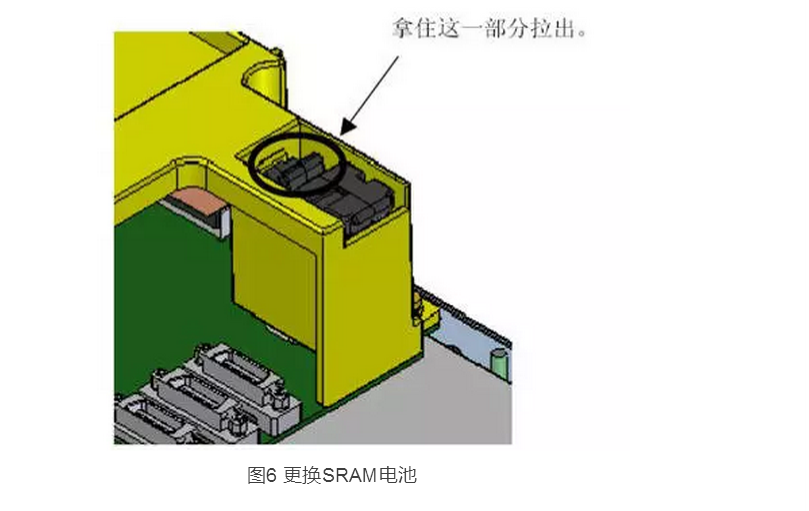(2)拉出位于CNC 裝置背面右下方的電池單元,如圖6所示;